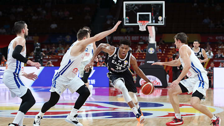 Greece's giannis antetokounmpo tries to get past united states' harrison barnes during fiba basketball world giannis antetokounmpo, the nba's mvp from the milwaukee bucks, scored 15.
